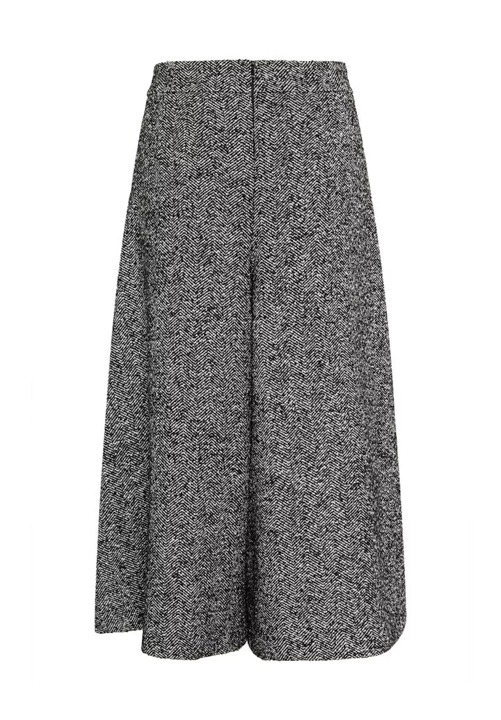 Wide leg culottes tailored for a relaxed fit, featuring a comfortable elastic waistband and mid-calf length. The soft fabric and breezy silhouette make these culottes a versatile addition for various occasions.