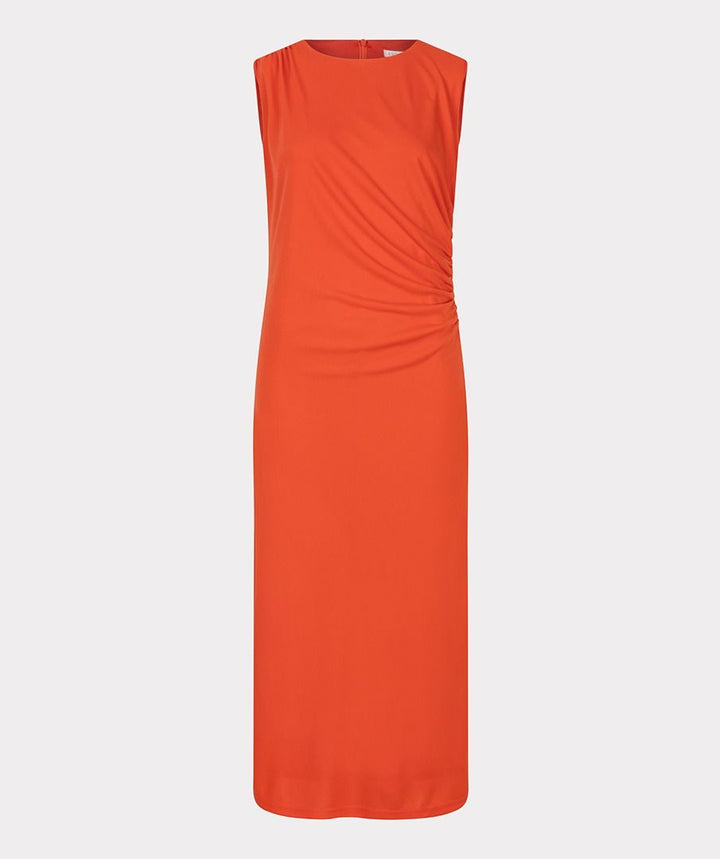 Beautifully cut dress with lightly draped fabric at the waist and right shoulder. This elegant dress is perfect for a wedding or a chic night out