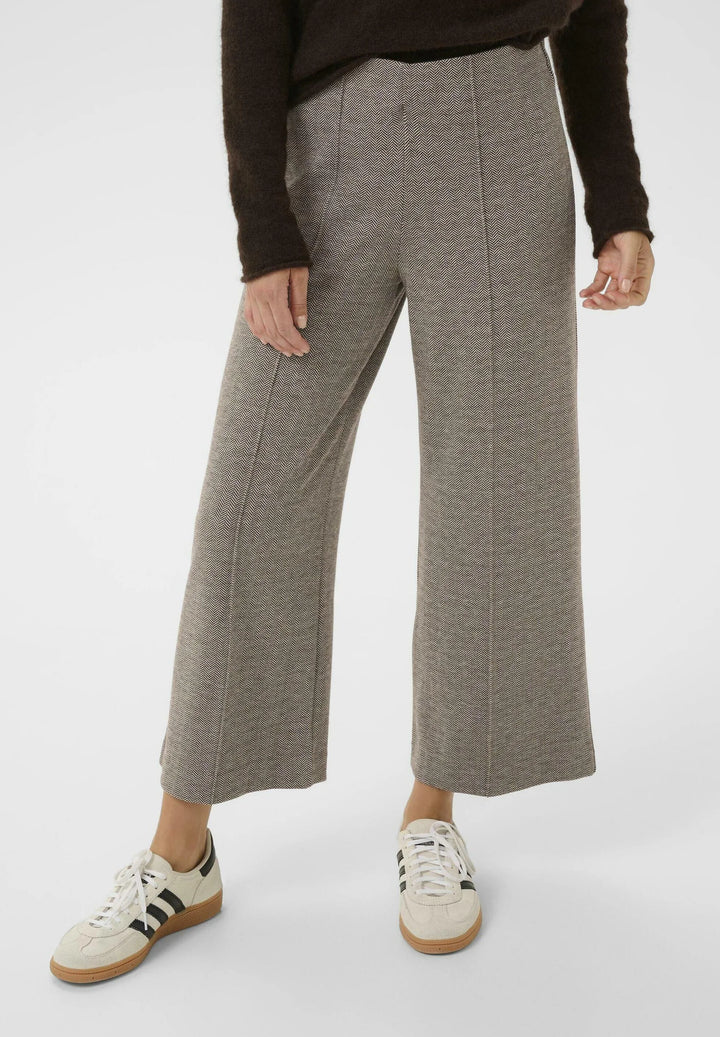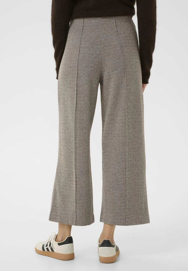 - Mid-rise, wide leg, cropped length, pull-on style, clean hems, tonal check print pattern