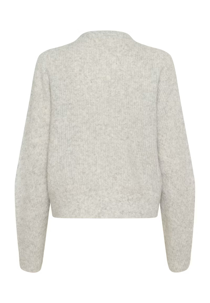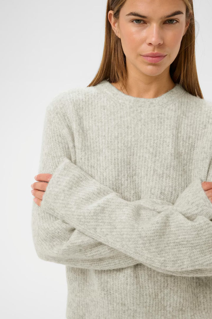 Sweater with a straight, boxy silhouette and subtle ribbed texture. Features a crew neckline, long sleeves, cropped length, and clean seamless finish